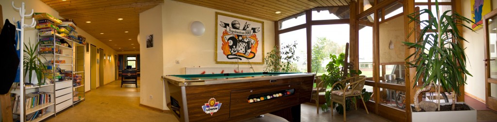 Flurbereich mit einem Billardtisch und weiteren Spiel-Angeboten